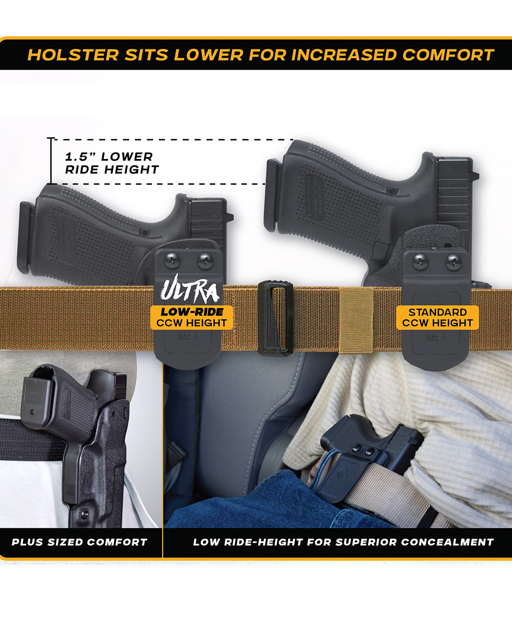 .08" Boltaron or Advanced Kydex T materials are used for higher impact resistance & precision fit.Ultra Low-Ride AIWB design features include: